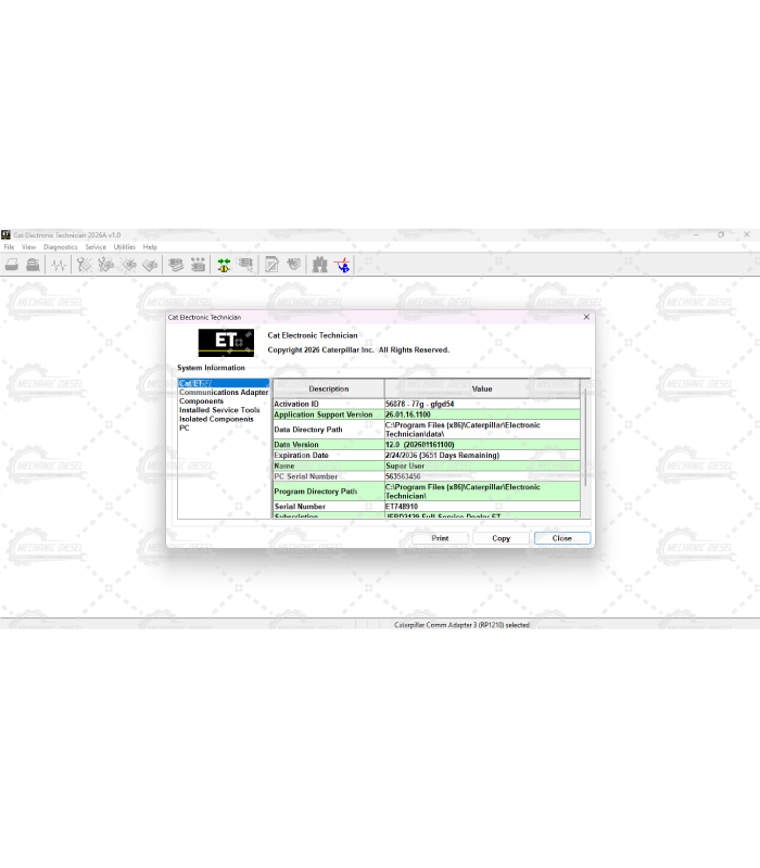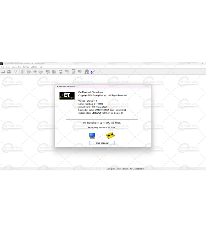 Caterpillar Electronic Technician (CAT ET) is diagnostic software required to communicate, diagnose and service electronically controlled cat engines, and machines. When connected to an Electronic Control Module (ECM), a technician has the ability to diagnose existing and potential problems, configure and calibrate the product, and obtain data for analysis.